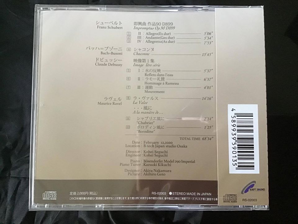 2015年11月8日 ベルギーよりダニエル・ルービンシュタイン氏(ヴァイオリン)をを迎えて 動画はこちら 2016年4月9日 ベルギーよりニコラ・ デルタイユ氏(チェロ)を迎えて 動画はこちら 2016年7月7日 ワルシャワ・フィルコンサートマスターズとの共演(ピアノ・トリオ) 左 ピオトル・ツェギエルスキ氏 (ヴァイオリン) 中央 谷真子(ピアノ) 右 ロベルト・プトフスキ氏 (チェロ) 動画はこちら 2016年11月7日 ベルギー・日本友好150周年記念演奏会(ピアノ四重奏 左から Nicolas Deletaille(cello) 松川暉(violin) 谷真子(piano) Sander Geerts(Viola) 動画はこちら 2017年3月25日 神戸大学大学院人間発達環境学研究科人間発達専攻(表現系)博士課程前期課程修了。 修士号(学術 Master of Arts)取得。 2017年4月29日 東京音楽大学校友会 第14回関西支部演奏会 ラヴェル 鏡より 1.蛾 3.海原の小舟 4.道化師の朝の歌 動画はこちら 2017年12月10日 salon classic創立50周年記念ガラコンサート 豊中市立芸術文化センター大ホールにて シューベルト即興曲Op.90-2 動画はこちら ドビュッシー花火 動画はこちら アートサロン空にて シューベルト即興曲Op.90-2 ドビュッシー花火 2018年2月4日チェロとサクソフォンとピアノのための室内楽コンサート ベートーヴェンチェロソナタ第3番 動画はこちら Nicolas Deletaille(cello)氏とご一緒に 2018年6月24日(日)奈良市音楽協会第31回定期演奏会:なら100年会館にて ラヴェル・・・風に「シャブリエ風に」「ボロディン風に」、水の戯れ 動画はこちら 2018年11月18日(日)とみきた芸術祭 奈良市立登美ヶ丘北中学校にて バッハ=ブゾーニ シャコンヌ 2019年6月30日(日)谷真子ピアノ・リサイタル 秋篠音楽堂にて シューベルト即興曲Op.90-2/3/4 バッハ=ブゾーニ シャコンヌ ドビュッシー映像第1集 1、水の反映 2、ラモー讃 3、運動 ラヴェル ラ・ヴァルス 動画はこちら 2020年2月13日 Bーtech Japan 大阪 レコーディング CD販売HPへのリンクはこちらへどうぞ。 2020年12月20日アートサロン空 クロマティック・ハーモニカ(奏者:竹内海人)&ピアノデュオコンサート ピアソラ リベルタンゴ カッチーニ アヴェ・マリア他 動画はこちら。 2021年11月23日 同志社同窓会館にて E.Grieg Holberg Suite "From Holberg's Time" Op.40 J.Brahms 2 Rhapsodies Op.79 M.Ravel Sonatine 動画はこちら。 2021年12月12日 奈良県文化会館国際ホールにて FINE ARTS CONCERT 2021ジョイントリサイタル ブラームス ラプソディーop.79-1,2 動画はこちら。 2022年6月5日 奈良市音楽協会 ミュージックフェスティバル第33回定期絵演奏会 なら100年会館中ホールにて ハイドン ピアノ・ソナタ第59番 変ホ長調 ⅩⅥー49 動画はこちら。 2022年9月4日 salon classic ピアノ・リサイタル モーツァルト幻想曲ニ短調KV397 ハイドンピアノ・ソナタ第59番 変ホ長調 Hob.ⅩⅥ/49 グリーグ組曲「ホルベアのの時代から」作品40 ラヴェル ソナチネ ブラームス 2つのラプソディ作品79 デュティユー ピアノ・ソナタ第3楽章「コラールと変奏」 DVDリリース 2022.10.1 →お求めはこちら。 8,500円/1枚 |