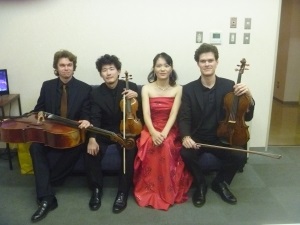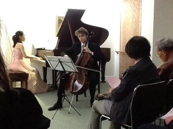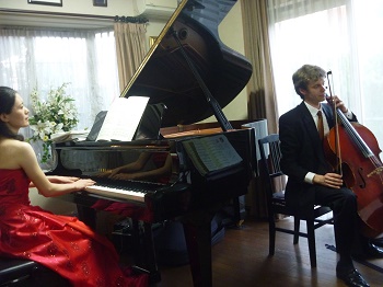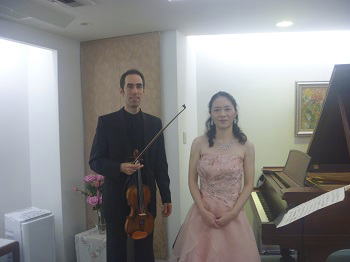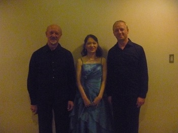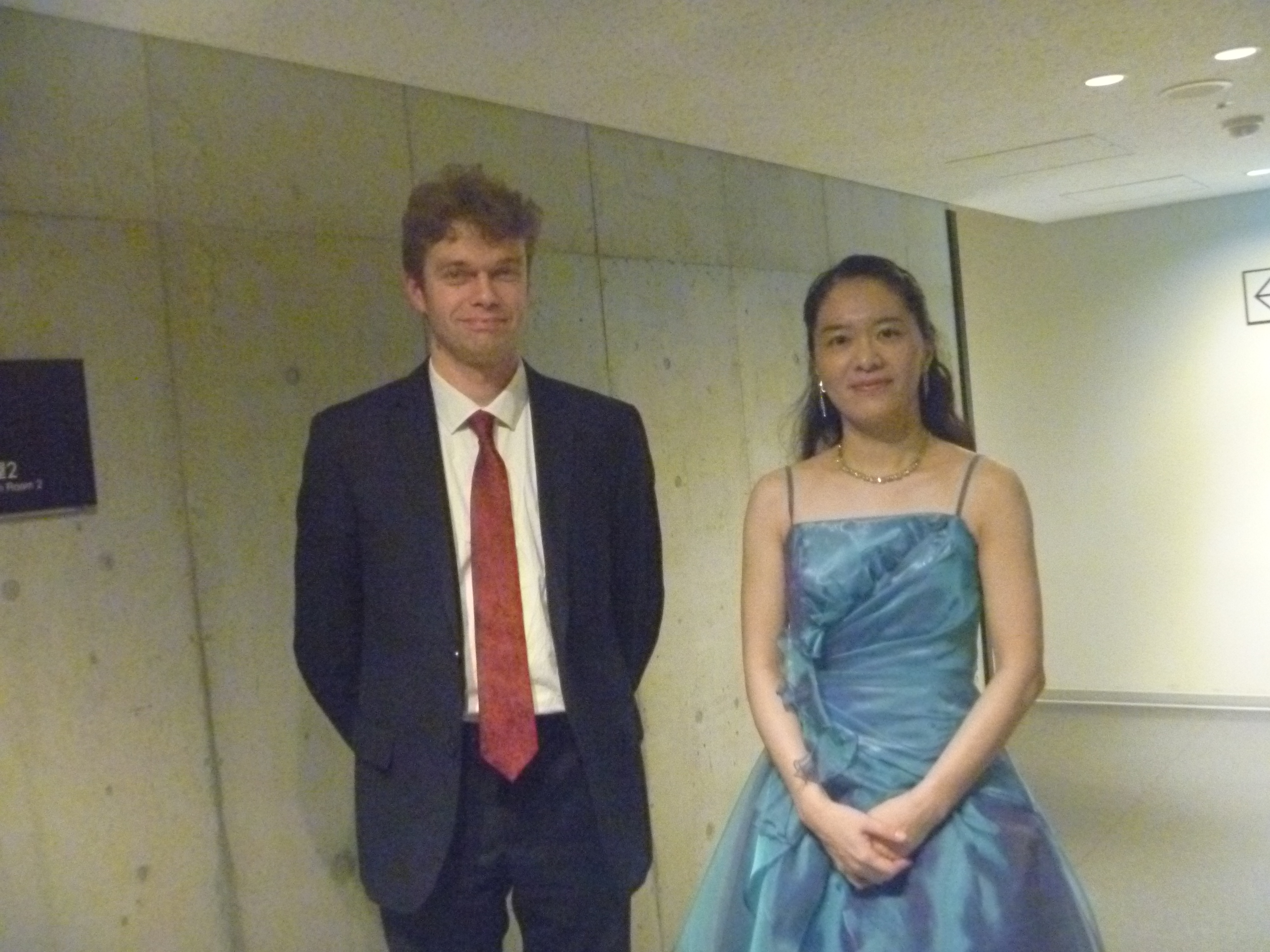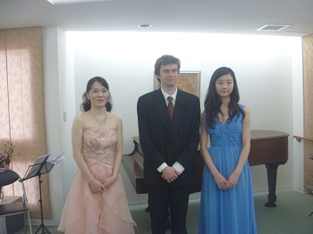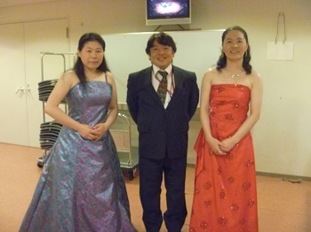 2012年 マティアス・フックス公開レッスンにて 第11回東京音楽大学校友会関西支部演奏会での楽屋にて東京音大の先輩の日本センチュリー交響楽団の首席トロンボーン奏者近藤孝司氏と2台ピアノで共演した日西麻紀さんとともに