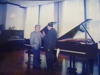 オランダ・ロッテルダム音楽院教授アキュールズ・デッレヴィーネ先生と一緒に ショパン ロンド ハ短調 Op.1を受講 日本ベーゼンドルファー大阪ショールームにて Prof. Aquiles Delle Vigne 日本ベーゼンドルファー大阪シュールームにて、デッレヴィーネ先生とイェルク・デームス氏談笑 |