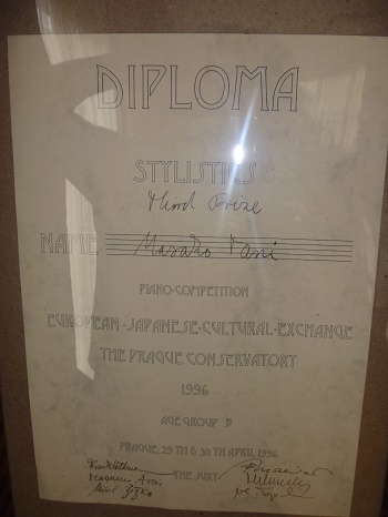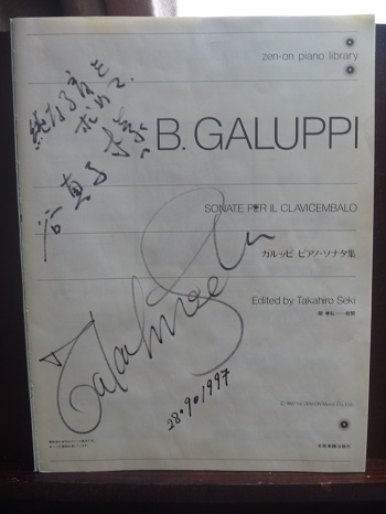 中3 「チェコ プラハ音楽院にて 第2回日欧親善音楽コンクー ル第3位」 ショパン スケルツォ第3番 嬰ハ短調 Op.39を演奏 動画はこちら Prague Conservatory 「プラハ音楽院レッスン室にて」 プラハ ディプロマ賞状 プラハ コンサートチラシ 関 孝弘先生校閲 ガルッピ ピアノ・ソナタ集 関先生のサイン 関先生から頂いた海外輸入の本の装丁 関 孝弘先生は長くイタリアに住んでいらしたピアニストの方で、中学3年生から毎週新幹線で東京の等々力のご自宅までレッスンに通い、お世話になった先生です。東京音楽大学在学中の間もご自宅でプライベート・レッスンをして頂きました。奥様はイタリア人で、レッスンは日本語ですが、普段はイタリア語でお話され、お宅はイタリアのようです。