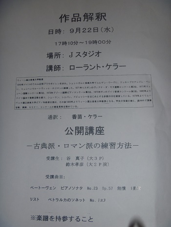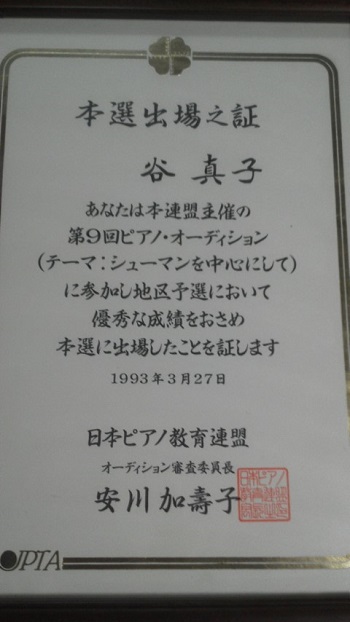 大学生 ワルター・ハウツィッヒ レッスン受講証明書 東京音楽大学 学内にて ウィーン国立音楽大学教授 ローラント・ケラー氏による公開レッスン 東京音楽大学 卒業式 東京・目白・椿山荘にて 奈良県新人演奏会 音源はこちら クラウス・シルデ マスタークラス 日本ベーゼンドルファー東京ショールームにて レッスンでの直筆ご注意 エレーナ・リヒテル マスタークラス ディプロマ 在学中主なコンサート出演「大阪・ドーンセンターにて東京音楽大学校友会関西連合支部主催 東京音楽大学在校生&卒業生による第5 回フレッシュコンサート」リスト 巡礼の年 第2年よりソナタ風幻想曲「ダンテを読んで」 「大阪・ドーンセンターにて東京音楽大学校友会関西連合支部主催 東京音楽大学在校生&卒業生によ る第7回フレッシュコンサート」ベートーベ ン ピアノ・ソナタ 第23番 「熱情」 |