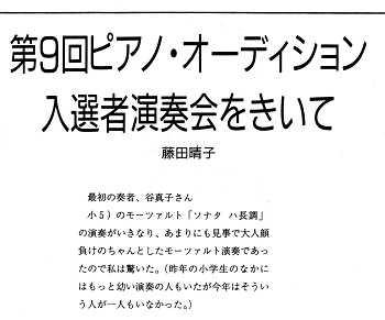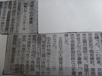 小4 第9回 虹のコンサートのプログラム ハイドン ピアノ協奏曲 Hob.18-2 ニ長調 第1楽章を演奏 動画はこちら 「’91京都ピアノコンクールにて総合第3位(京都会館にて)」 ’91京都ピアノコンクール京都新聞記事より |
