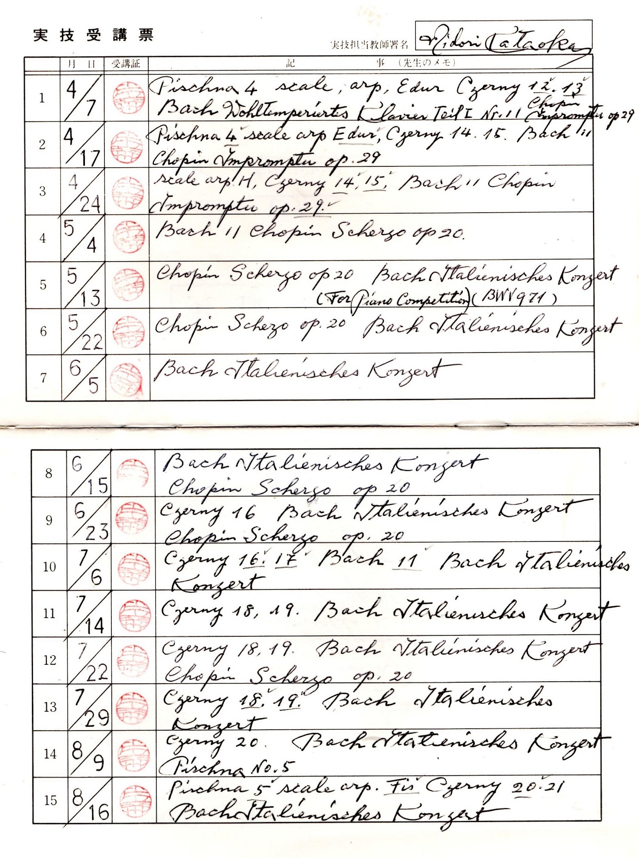 12歳(中1) 片岡みどり先生が校訂されたシマノフスキアルバム 先生の楽譜へのサイン ポーランド・ワルシャワ音楽院院長・相愛大学客員教授 カジミェ―ル・ゲルジョード先生と ショパン スケルツォ第1番のlessonに て」 動画はこちら →「Prof. Kazimierz Gierźodのショパン演奏」 ゲルジョード先生レッスンプログラム |
